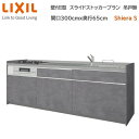 壁付I型 間口スライドストッカープラン グループ2 間口300cm奥行65cm 高さ・扉色選択可能 3口コンロ レンジフード ウォールユニット無 食器洗い乾燥機無 システムキッチン リクシル シエラS W3000mm 流し台 新築 リフォーム キッチン